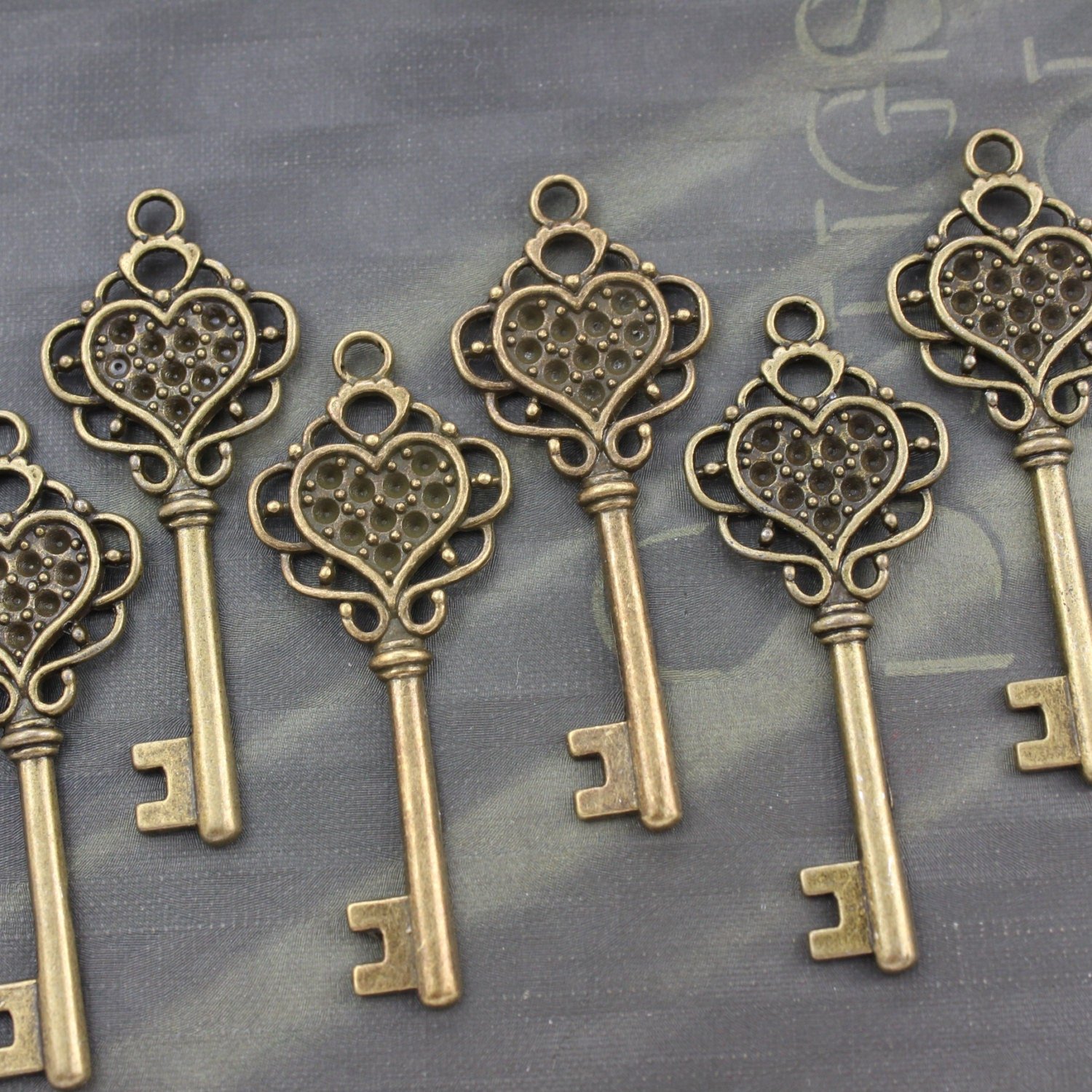 These key charms can be used in a variety of ways, such as in steampunk supplies, scrapbooking, or wedding key craft supplies. If you desire a different quantity or wish to mix and match these keys with others from the shop for a custom listing, the seller is open to accommodating your requests. For any inquiries or customizations, feel free to contact the seller promptly, as they aim to provide excellent customer service and typically check messages daily. Create unique and captivating crafts with these Antique Brass skeleton Key Charms and add a touch of vintage elegance to your projects.