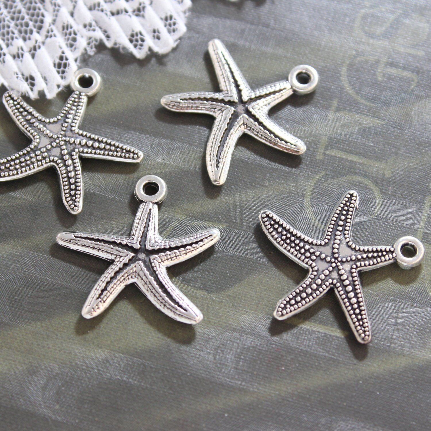 The 10 Starfish Charms Antique Tibetan Silver Double Sized are an exquisite addition to any crafting project. Each pack includes 10 charming starfish charms in an antique Tibetan silver finish. These double-sized charms measure 26x25MM, making them perfect for jewelry-making, scrapbooking, or any other creative endeavor you may have in mind.