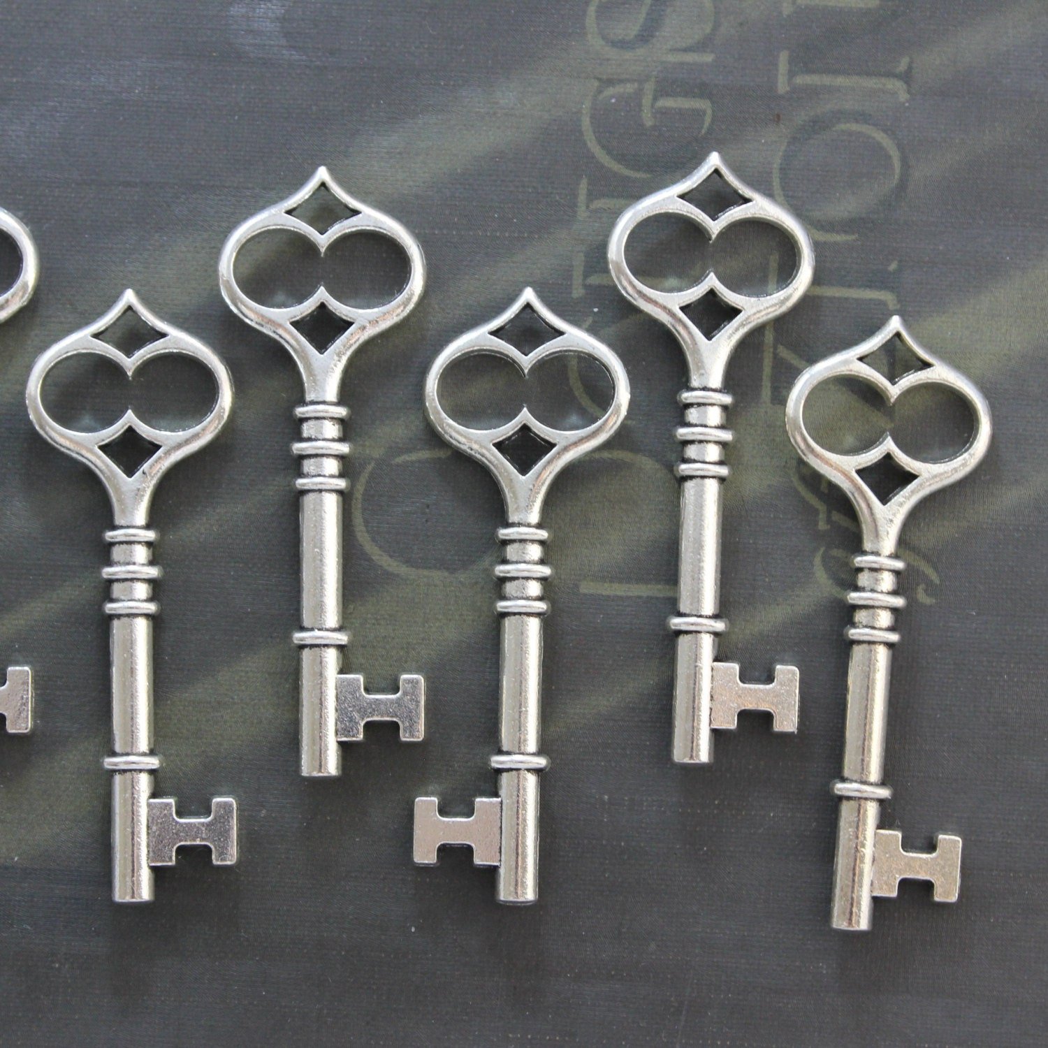 - 10 double-sided antique silver skeleton keys made of lead/nickel free pewter.