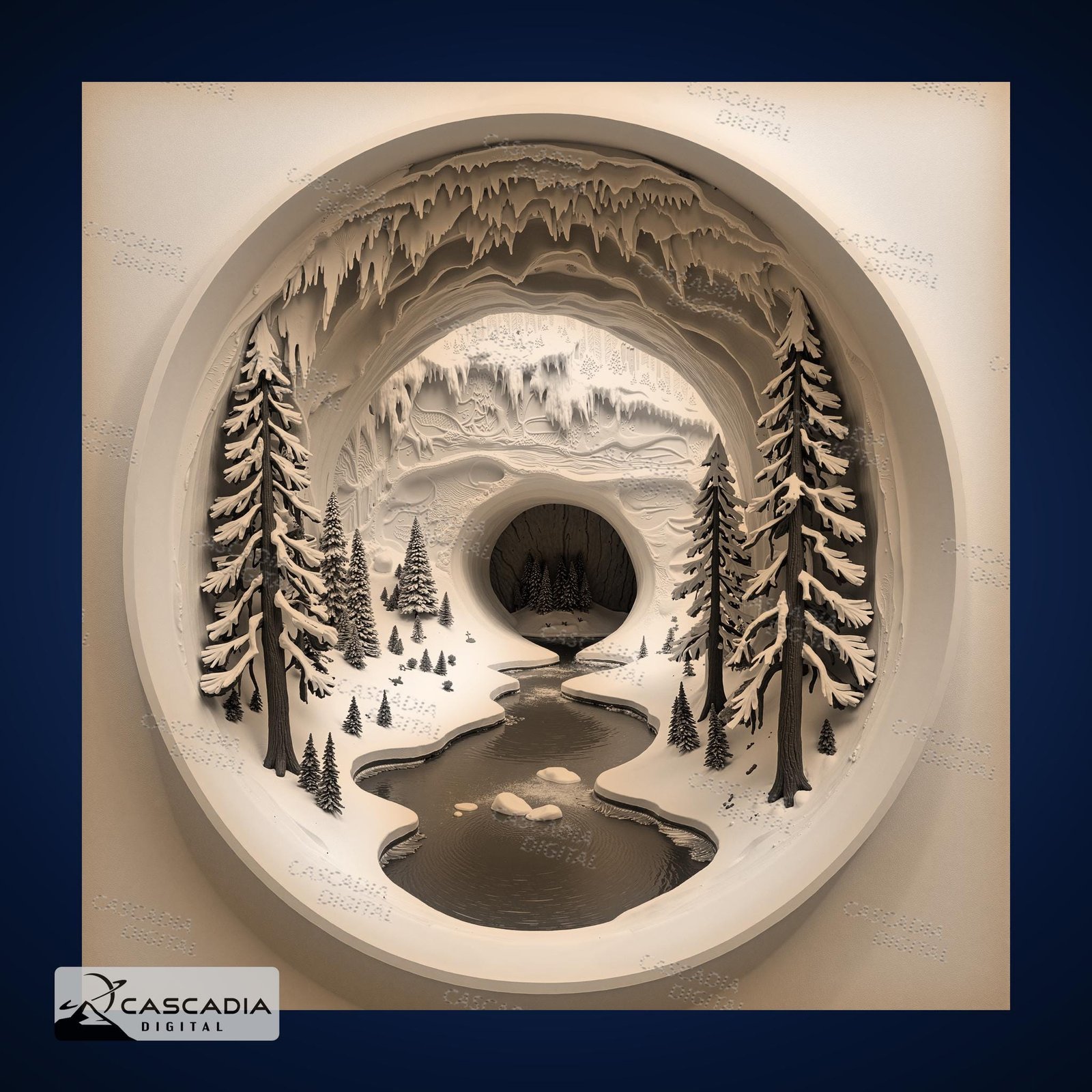 Frozen Evergreen Cave – Laser Engrave 4K PNG Image